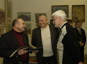 Название проекта — «Встреча» — оправдывает себя полностью. Во-первых, в рамках одного выставочного зала встречаются художники разных стилей, техник я жанров. Это - принцип организации «Гостиной на Дворянской»: она объединяет, как написано в уставе, «всех возможных художников». Единственное ограничение — не больше трех работ от каждого творца. При этом в экспозиции складывается целостная картинка всех тенденций современного искусства Украины. Плакаты Евгения Маслова, камеи Александра Бильдера, фотографии Олега Малеваного, Владимира Скипенко, Владимира Оглоблина и Владимира Бысова, скульптуры Александра Ридного, эскизы театральных костюмов и оформления сцены Татьяны Медведь и Тараса Шигимаги, живопись Виктора Ковтуна и Михаила Попова, графика Евгения и Сергея Егоровых -Харьков представил, что называется, самое-самое. Крымчане привезли работы, в которых горы, море, солнце и лето - в основном, это живопись и акварели.