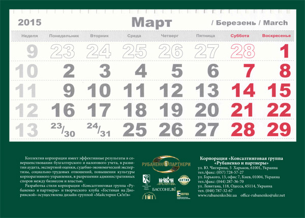 Издание ежегодных книг-календарей
