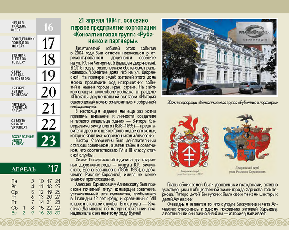Календарь на 2017 г. Алчевские и их окружение