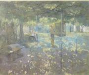 | "Зеленая аллея". Масляная пастель, тонированная бумага. |